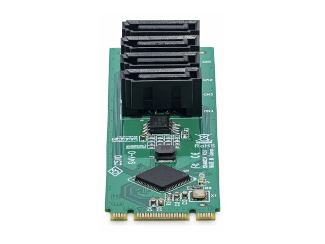 StarTech.com 4-Port M.2 to SATA Adapter Card, M.2 PCIe 3.0 to SATA HDD/SSD Expansion Card, ASM1064 Chipset, M.2 NVMe to 4x HDD/SSD for Windows/macOS/Linux - Gränssnittsadapter - SATA - M.2 Card - grön