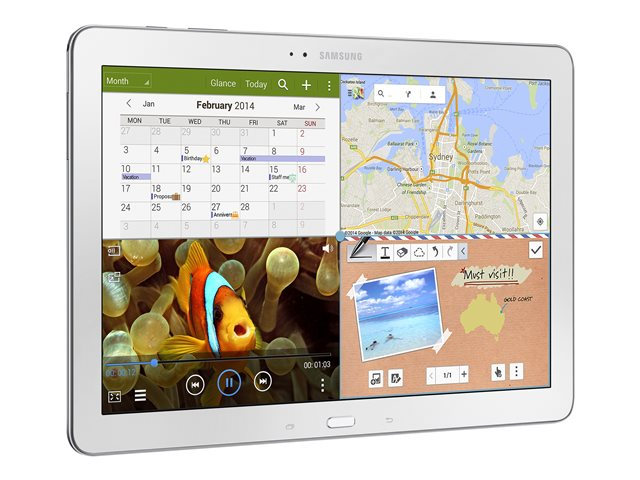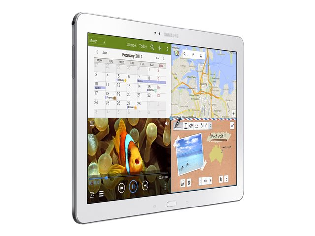 | Förinstallerad programvara | Gmail, YouTube, Samsung Apps, Photos, Google Search, Google Voice Search, Evernote, Newsstand, DropBox, Google Plus, Google Chrome, Samsung TouchWiz, Google Drive, Google Play Store, Google Play Books, Google Play Movies & TV, Google Play Music, Samsung KNOX, Samsung Kies, AllShare Cast, Google Plus Hangouts, Samsung Hub, Bloomberg Businessweek+, NYTimes, Google Settings, Google Play Games, Samsung Magazine UX, Samsung e-Meeting, Samsung SideSync 3.0, Cisco WebEx Meetings, Remote PC, Sketchbook Pro |