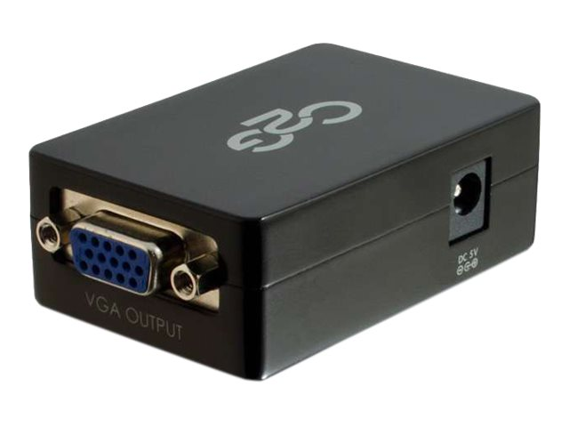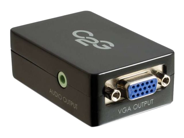 C2G Pro HDMI till VGA Converter är en idealisk lösning för att ansluta nyare bärbara datorer eller datorer som matar ut en HDMI-signal till äldre skärmar, till exempel projekt eller bildskärmar, som accepterar en VGA-ingång. Denna enhet konverterar de digitala HDMI A / V-signalerna till en analog VGA-video och stereoljudsignal. Många produkter på marknaden, särskilt kablar, gör anspråk på denna kapacitet, men de flesta av dessa produkter "anpassar" bara från HDMI till VGA. Utan en aktiv omvandlingsprocess finns det mycket få enheter som kan mata ut en analog VGA-signal från en HDMI-utgång.