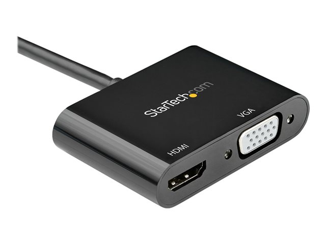 Denna DisplayPort till HDMI VGA-adapter erbjuder en portabel lösning för anslutning av din DP-utrustade bärbara dator till en VGA- eller HDMI-skärm. Adaptern har stöd för High Dynamic Range (HDR) och ger skarpare bilder med förbättrad video. Två-i-ett-videoanslutning - perfekt för resor Slipp besväret med att bära på olika adaptrar med hjälp av denna 2-i-1 DisplayPort-skärmadapter. Tack vare både VGA- och HDMI-utgångar kan du bekvämt ansluta din bärbara dator till alla HDMI- eller VGA-utrustade skärmar med hjälp av denna multiport video-konverterare. Den kompakta och lätta designen gör att reseadaptern enkelt får plats i din datorväska, vilket gör den perfekt för yrkesverksamma som ofta är på resa. Enastående 4K-bildkvalitet HDMI-utgången på denna DisplayPort video-adapter gör att du kan utnyttja videofunktionerna som är inbyggda i din dators DP-anslutning, vilket levererar fantastisk UHD-kvalitet till din 4K 60 Hz HDMI-skärm. Dessutom har VGA-utgången stöd för HD-upplösningar på upp till 1920 x 1080, vilket garanterar att du inte behöver kompromissa med bildkvaliteten när du ansluter till en VGA-skärm eller projektor. Med HDR-stöd får du levande bilder med ökad kontrast, ljusstyrka och färger och större ljusstyrka än vanlig digital bildbehandling. Problemfri installation Ingen ytterligare programvara eller drivrutiner måste installeras, så denna dongel för DP (hane) till HDMI (hona) och VGA (hona) erbjuder en plug-and-play-lösning för användarvänliga upplevelser. Med den kan du gå in i vilket styrelserum som helst och vara redo att göra en presentation, vilket ger ett gott första intryck. DP2VGAHD20 täcks av StarTech.coms 3-årsgaranti och gratis livstidsgaranti på teknisk support.