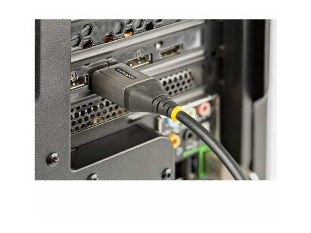 StarTech.com 1ft/30cm DisplayPort 1.4-kabel är en förstklassig lösning för att ansluta dina DisplayPort-aktiverade enheter. Med stöd för 8K 60 Hz HDR10 levererar den exceptionell visuell kvalitet och verklighetstrogna färger, vilket gör den lämplig för professionella och hemunderhållningsinstallationer. Kabelns slitstarka TPE-mantel (termoplastisk elastomer) säkerställer att den tål daglig användning, medan den kompakta längden gör den perfekt för installationer där utrymmet är begränsat. Med hankontakter i båda ändar erbjuder den problemfri anslutning, vilket eliminerar behovet av ytterligare adaptrar. Oavsett om du spelar, streamar eller arbetar är den här DisplayPort 1.4-kabeln utformad för att ge en överlägsen skärmupplevelse.