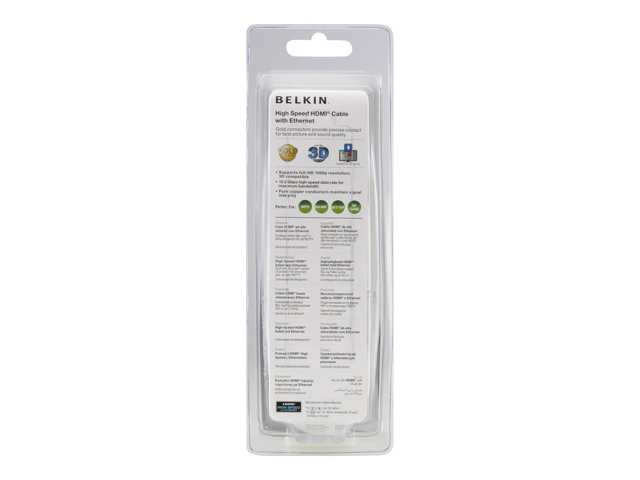 The Belkin HDMI cable with Ethernet is a high-quality connectivity solution that enhances your digital experience by providing high-speed Internet sharing and superior signal quality. With its Pure Copper conductors, the cable ensures that the integrity of your signal is maintained, offering clear, vibrant visuals and supporting 3D-Transmission for an immersive viewing experience. The cable features standard 19-pin HDMI Type-A connectors on both ends, making it compatible with a wide range of devices, from gaming consoles and laptops to TVs and home theater systems. Whether you're setting up a home entertainment system or connecting devices in a professional setting, this HDMI cable is designed to meet your connectivity needs, ensuring a reliable and high-quality connection across your digital devices.