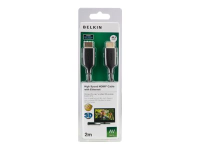 Belkin High Speed HDMI Cable - HDMI-kabel med Ethernet - HDMI hane till HDMI hane - 2 m - svart F3Y021BF2M