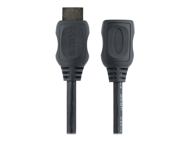 The HDEXT2M HDMI extension cable (2m) features an HDMI 19-pin (male) connector on one end and an HDMI 19-pin (female) connector on the other, providing an extra 2-meter connection distance between your HDMI-enabled devices.