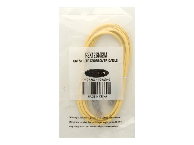 Belkin - Övergångskabel - RJ-45 (hane) till RJ-45 (hane) - 2 m - UTP - CAT 5e - formpressad - gul