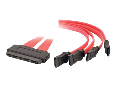 C2G Internal SAS 32-pin (SFF-8484) to Four Serial ATA (SATA) Cable - SATA/SAS-kabel - Serial ATA 150/300/600/ SAS 6Gbit/s - 4-vägs - 32-pin 4i MultiLane (hona) till SATA (hona) - 1 m - röd 81811