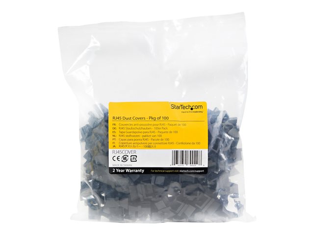 StarTech.com 100 Pack RJ45 Dust Covers, Reusable RJ45 Blanking Plug/ Dust Cap, Ethernet/LAN Port Protector/ Blocker, Snap In RJ45 Female Jack Protective Cover for Hubs, Switches, Routers - Ethernet Port Cover (RJ45COVER) - Dammskydd - svart (paket om 100)