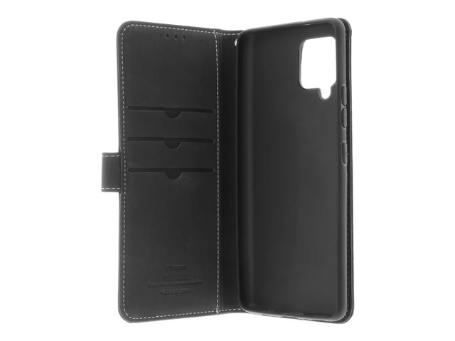 Insmat - Vikbart fodral för mobiltelefon - genuint läder, polykarbonat - svart - för Samsung Galaxy A42 5G