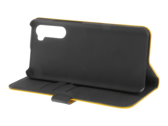 Insmat - Vikbart fodral för mobiltelefon - genuint läder, papper, kartong, polykarbonat, bomull, aluminiumfolie - humlegul - för OnePlus Nord