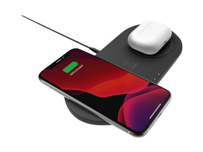 Belkin BoostCharge Dual - Trådlös laddningsplatta + växelströmsadapter - 15 Watt - svart - för Apple iPhone 11, 11 Pro, 11 Pro Max, 8, 8 Plus, X, XR, XS, XS Max; Samsung Galaxy Note10, Note10+, S10, S10+, S10e