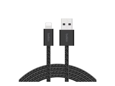 Belkin BoostCharge - Lightning-kabel - USB typ A hane till Lightning hane - 1.5 m - svart - braided (paket om 2)