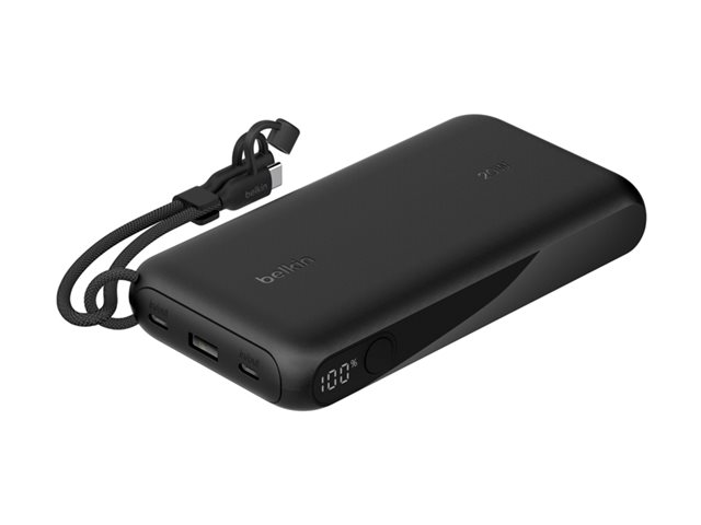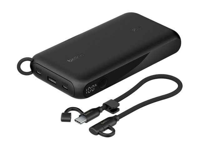 Belkin BoostCharge - Power bank - med display - 20000 mAh - 20 Watt - PD - 3 utdatakontakter (2 x USB-C, USB) - på kabel: USB-C - svart BPB028HQBK