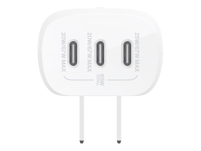 Belkin BoostCharge - Strömadapter - PPS-teknik - 67 Watt - 3.25 A - PD 3.0, Strömmatning 3.1 - 3 utdatakontakter (USB-C) - vit