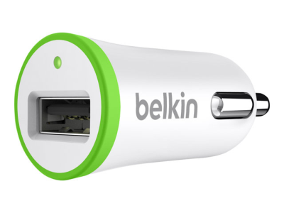 Belkin Micro Car Charger - Strömadapter för bil - 1 A (USB) - vit, grön F8J044CWWHT