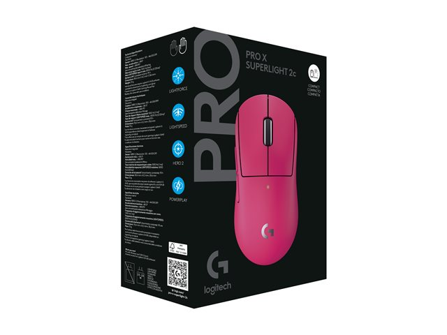 Logitech G PRO X SUPERLIGHT 2C - Mus - 5 knappar - trådlös, kabelansluten - 2.4 GHz, USB - rosa