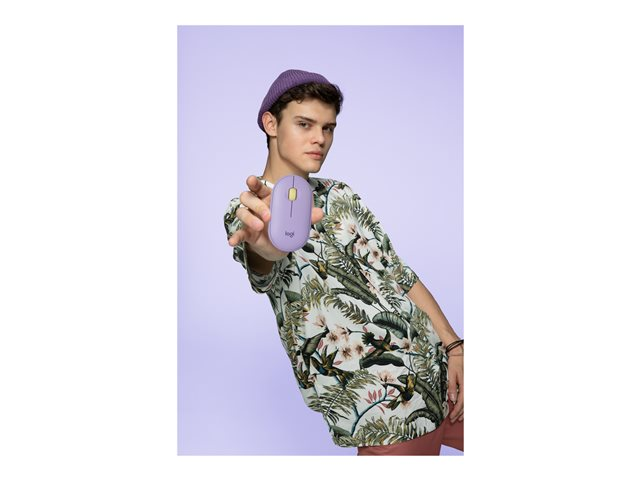 Logitech Pebble M350 - Mus - optisk - 3 knappar - trådlös - Bluetooth - trådlös USB-mottagare - lavender lemonade