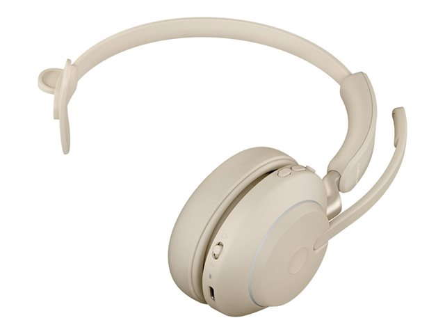 Jabra Evolve2 65 UC Mono - Headset - på örat - konvertibel - Bluetooth - trådlös - USB-C - ljudisolerande - beige - med laddningsställ