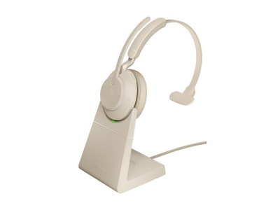 Jabra Evolve2 65 UC Mono - Headset - på örat - konvertibel - Bluetooth - trådlös - USB-A - ljudisolerande - beige - med laddningsställ 26599-889-988