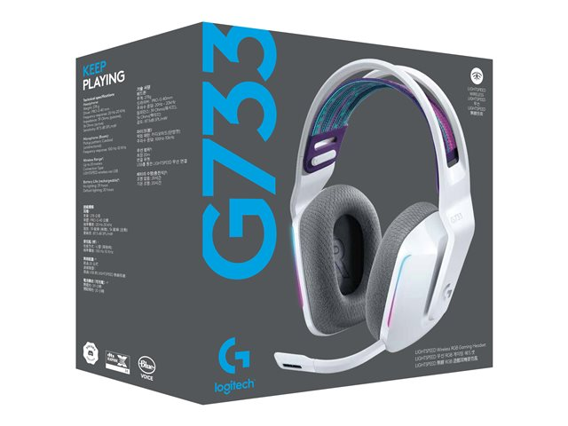 Logitech G G733 LIGHTSPEED Wireless RGB Gaming Headset - Headset - fullstorlek - 2,4 GHz - trådlös - vit