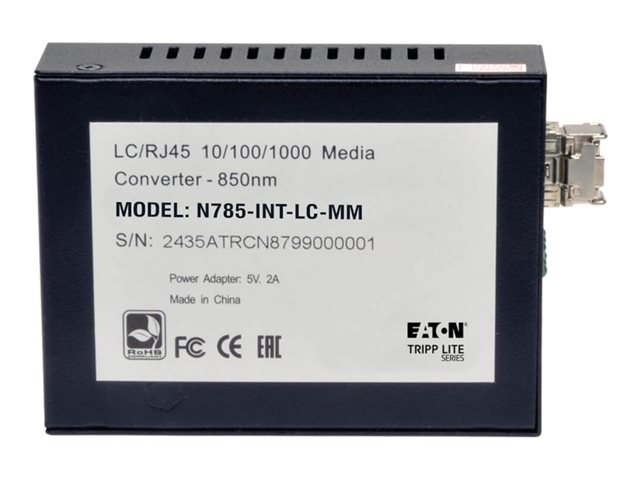 Eaton Tripp Lite Series Gigabit Multimode Fiber to Ethernet Media Converter, 10/100/1000 LC, International Power Supply, 850 nm, 550 m (1,804 ft.) - Fibermediekonverterare - 1GbE - 10Base-T, 100Base-TX, 1000Base-T - RJ-45 / LC multiläge - upp till 550 m - 850 nm N785-INT-LC-MM
