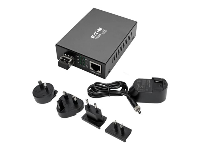 Eaton Tripp Lite Series Gigabit Multimode Fiber to Ethernet Media Converter, 10/100/1000 LC, International Power Supply, 850 nm, 550 m (1,804 ft.) - Fibermediekonverterare - 1GbE - 10Base-T, 100Base-TX, 1000Base-T - RJ-45 / LC multiläge - upp till 550 m - 850 nm