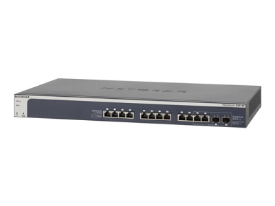 The XS712T is a powerful Smart Managed Switch that includes 12 ports of 10-Gigabit connectivity (12 copper with 2 shared combo copper/SFP+ Fiber ports). NETGEAR's 10-Gigabit Smart Managed Switches are purposely designed as a cost-effective way to provide 10G connections to 10G-capable servers and NAS (Network Attached Storage) systems. The XS712T provides comprehensive L2+/Layer 3 Lite features (including IPV6 management) allowing SMB customers to deploy virtualization, cloud-based services and applications like VoIP, video streaming and IP surveillance, which require higher reliability, speed, and performance. It can be used at the "center of a small business network" or as an aggregation/access switch in a larger organization. The XS712T is ideal for smaller workgroups that need high-bandwidth for sharing, collaborating, editing, and publishing high-density content like video or animation.