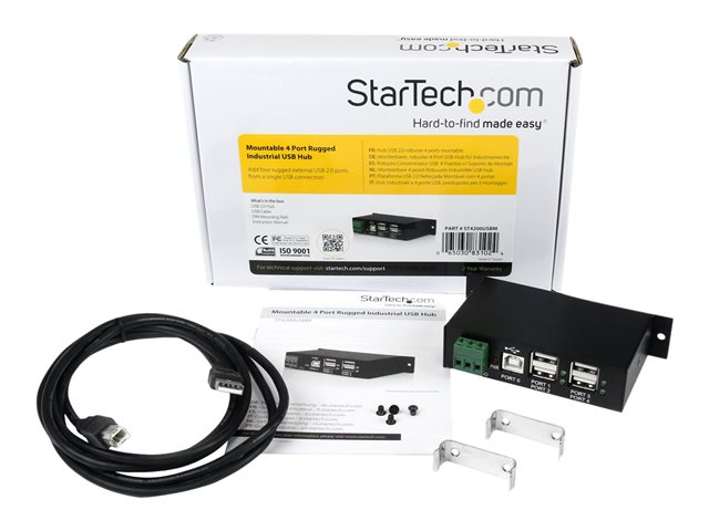 StarTech.com Rackmount USB 2.0 Hub - 4 Port Rugged Industrial USB 2.0 Hub - Hubb - 4 x USB 2.0 - DIN-skenmonterbar - Likström - för P/N: ITB20D3250, MSDREADU2OTG, USB2HAB15, USB2HAB30AC, USB2HAB50AC, USB2HABM1, USB2HABM6RA