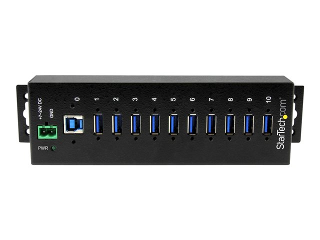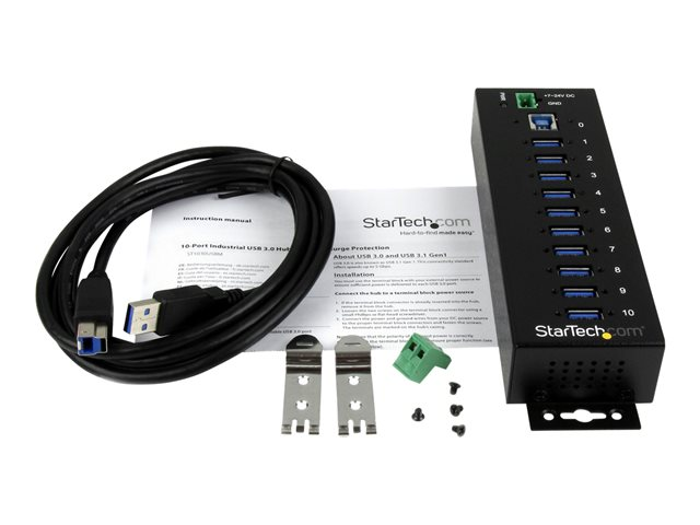 StarTech.com USB 3.0-hubb med 10 portar - Industriell USB-A-hubb i metall med ESD- och överspänningsskydd - Monterbar på DIN-skena, vägg eller skrivbord - TAA-kompatibel USB-expansionshubb - Hubb - 10 x SuperSpeed USB 3.0 - DIN-skenmonterbar - Likström - för P/N: ITB20D3250, USB312SAT3CB, USB315CB2M, USBLT1MWS, USBLT2MBR, USBLTM1MBK, USBLTM1MWH