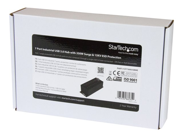 StarTech.com USB 3.0-hubb med 7 portar - Industriell USB-A-hubb i metall med ESD-skydd och 350 W överspänningsskydd - Monterbar på DIN-skena, vägg eller skrivbord - TAA-kompatibel USB-expansionshubb - Hubb - 7 x SuperSpeed USB 3.0 - DIN-skenmonterbar, väggmonterbar - likström - för P/N: ITB20D3250, USB312SAT3CB, USB315CB2M, USBLT1MWS, USBLT2MBR, USBLTM1MBK, USBLTM1MWH ST7300USBME