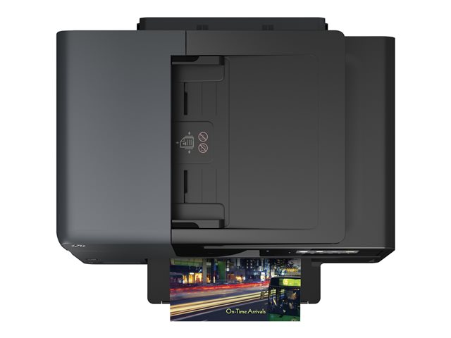 Skriv ut i färg med professionell kvalitet för upp till 50 % lägre sidkostnad än med laser med denna högproduktiva e-all-in-one för företag. Skriv ut från den stora pekskärmen, trådlöst, på rörlig fot eller via din NFC-kompatibla enhet.