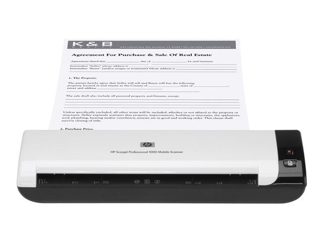 Med HPs robusta, kompakta, bärbara skanner kan du digitalisera dokument på kontoret, på fältet eller när du reser. Den gör det enkelt att skanna visitkort, präglade kort, A4-size-dokument och blanketter med en längd på upp till 34 tum/86 cm, när du vill och var du vill. Skanna enkelsidiga dokument med upp till 5 sidor i minuten och dubbelsidiga dokument med upp till 8 bilder per minut. Skydda skannern med den tåliga transportväskan (medföljer) och förvara den på små, kompakta arbetsplatser.