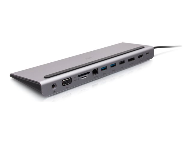 C2G USB-C 10-in-1 Triple Display Docking Station with HDMI, DisplayPort, VGA, Ethernet, USB, SD Card Reader, 3.5mm Audio and Power Delivery up to 100W - 4K 30Hz - Dockningsstation - USB-C - VGA, HDMI, DP - 1GbE