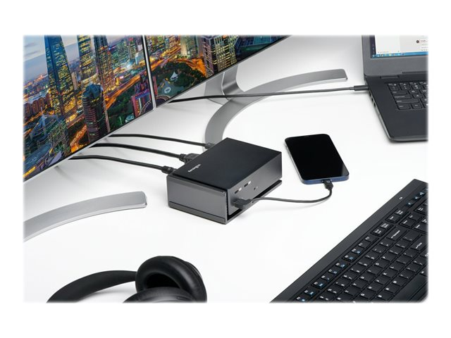 Den senaste generationens ultratunna bärbara datorer och enheter har ofta för få portar för att användare ska bli verkligt produktiva. Dockningsstationen SD5560T erbjuder många anslutningsalternativ och kräver inga drivrutiner eller nedladdningar. SD5560T fungerar med både Windows och macOS samt är kompatibel med Thunderbolt 3-, Thunderbolt 4- och USB-C-enheter. SD5560T har stöd för upp till två externa bildskärmar via HDMI och USB-C för Thunderbolt-kompatibla enheter. Förbli ansluten och produktiv med 2 x USB-C-portar, 4 x USB-A-portar, 1 x Gigabit Ethernet-port, 1 x kombinerad ljudport, 1 x HDMI 2.0-port och en ytterligare Thunderbolt 3-port.* Alla med dataöverföringshastigheter på upp till 40 Gbps och 96 W strömförsörjning för att hålla din enhet laddad – via en enda anslutning.* När den här Thunderbolt 3-porten används med bärbara USB-C Alt Mode-datorer nedgraderas den till USB 2.0 och har inte stöd för video- eller kedjekopplingsfunktioner.