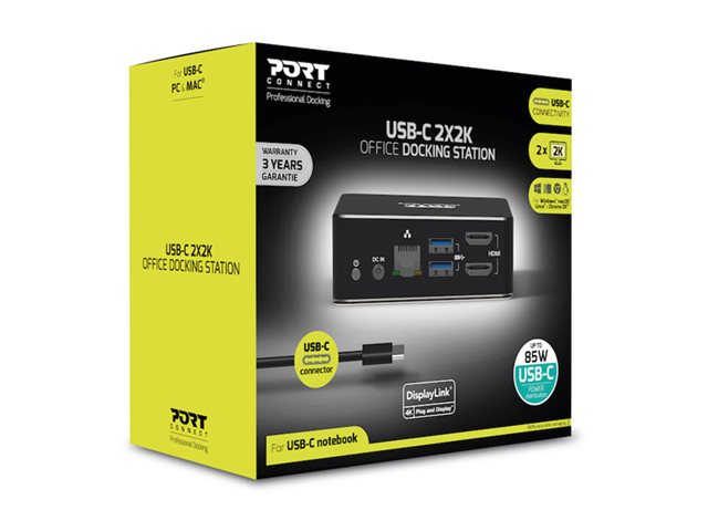 PORT connect USB-C & USB-A Dual Video Docking Station 2 X 2K - Dockningsstation - USB-C / USB 3.0 - 2 x HDMI - 1GbE - 100 Watt 901908