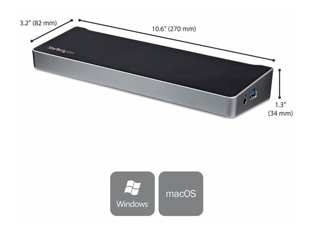 | Gränssnitt | 2 x bildskärm / video - DisplayPort - 20-stifts DisplayPort 1 x bildskärm / video - HDMI - 19-stifts HDMI typ A 4 x SuperSpeed USB 3.0 - 9-stifts USB typ A 2 x USB-C - 24 pin USB-C 1 x nätverk - 10Base-T/100Base-TX/1000Base-T - RJ-45 1 x hörlurar - minitelefon 3,5 mm 1 x mikrofon - minitelefon 3,5 mm 1 x headset - minitelefon 3,5 mm, 4-poligt |