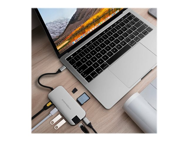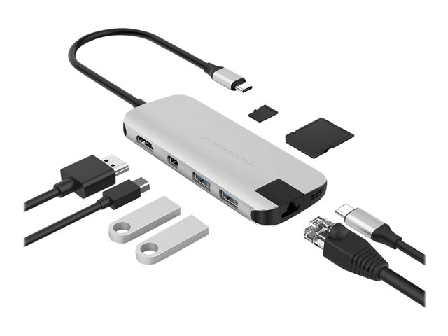HyperDrive Slim 8-in-1 Hub - Dockningsstation - USB-C - HDMI, Mini DP - 1GbE HD247B-SILVER